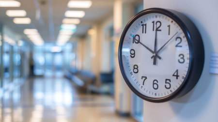 A round wall clock with black hands and numbers sits against a soft pink wall. The clock displays the time just before noon, creating a calm, inviting atmosphere.