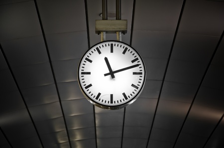 Close-up of Analog vintage white clock isolated on black background. Time management concept.