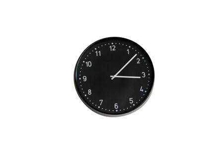 Retro wall clock black color isolated on white background. Object with clipping path.