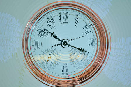 the big hour dial of white black color closeup with abstract effect of Droste