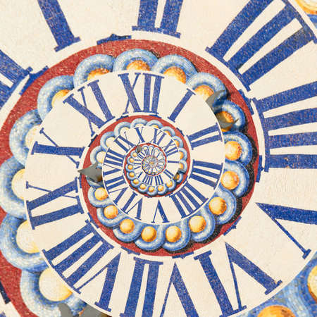 Retro old clock from Vatican St Peters Basilica spiral abstract background. Antique clock fractal background. Time spiral surreal clock