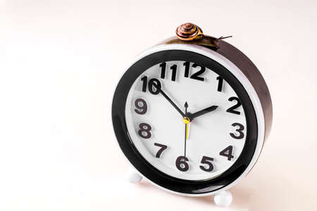Time lapse concept - snail and clock on white background