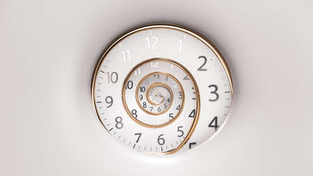 Abstract modern white spiral clock dial. Infinite time concept.