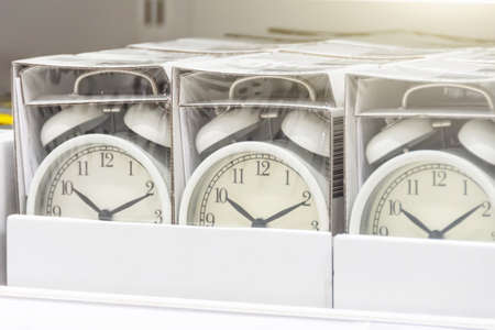 MELAKA, MALAYSIA - April 13, 2018 : Assorted brand and type of clock on shelf rack display in the Tesco store.