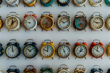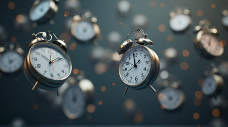 Dynamic alarm clocks cascade symbolizing urgency and the relentless passage of time for business