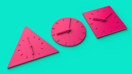Pastel colors retro clocks that show five minutes to twelve. Dual color background