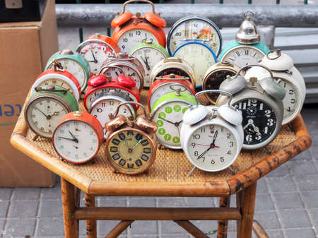 Antique old clocks for sale at a flea market in the old city of Jaffa, Tel Aviv, Israel