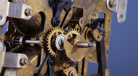 Mechanism of old clock - sprockets in the system are well visible, blue tint