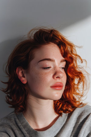 Young redhead woman portrait with copyspace