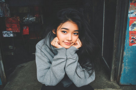 Portrait of thai adult beautiful girl relax and smile