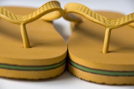 Rubber beach sandals on yellow background