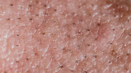 Macro human skin texture. Dry skin pattern. Caucasian dermatology background,