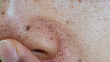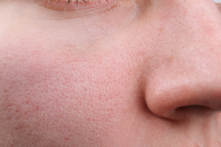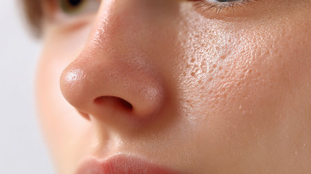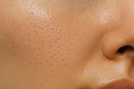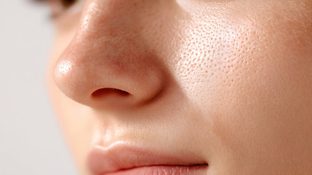 Close-up of skin with open pores emphasizing post steam facial glow for skincare and beauty routine concept.