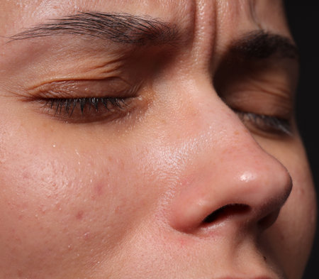 Woman with dry skin on face, closeup
