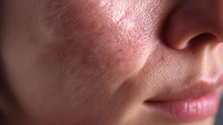 Skin after laser removing unwanted hair from face. Detail view. Epilation and cosmetology procedure.