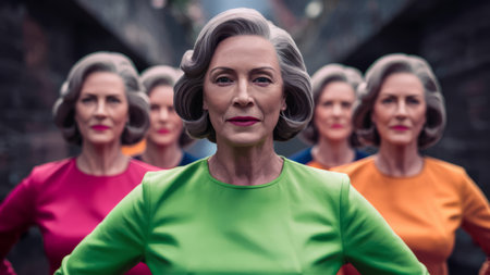 Multiple profiles blend together with dynamic colors capturing the essence of contemplation or introspection in an artistic manner.