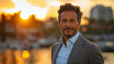 A mature man shares a reflective moment with a calm and confident demeanor.
