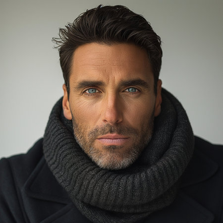 Portrait of a handsome mature man in winter coat and scarf.