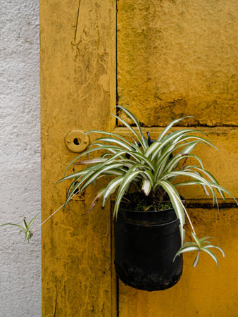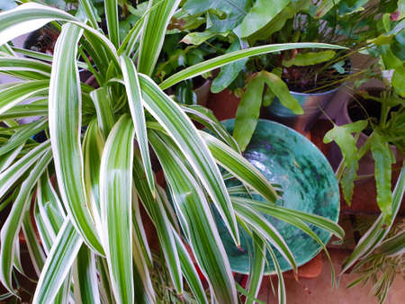 Chlorophytum comosum plant in a detail of a Mediterranean style garden in Barcelona in the first days of spring