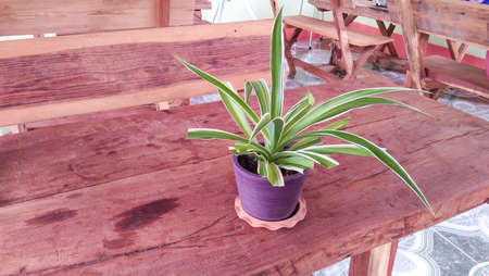Ornamental plants . chlorophytum comosum on table wooden in restaurant