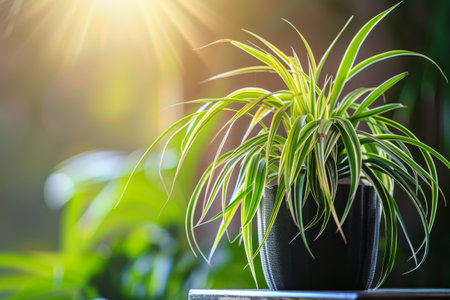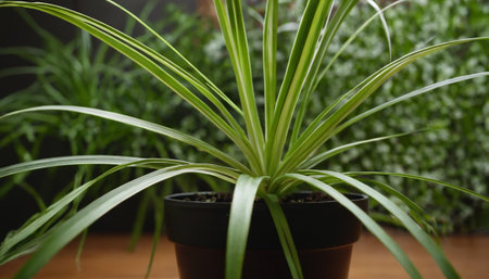 Lush Green Spider Plant with White-Edged Leaves High-Quality Indoor Houseplant for Natural Decoration, Home Gardening, Office Spaces, and Eco-Friendly Botanical Concepts