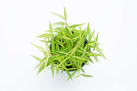 Green yellow plant in pot on white background. Top view of Thyrsostachys Siamensis Gamble.