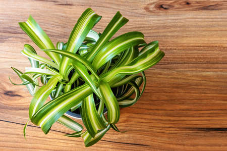 Chlorophytum comosum houseplant plant with long leaves image from above