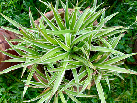 A stunning indoor plant featuring vibrant green and white striped leaves adds elegance to any space. Perfect for home decor or enhancing indoor atmosphere.