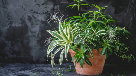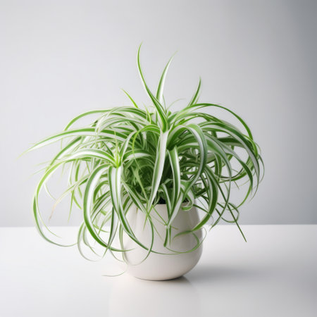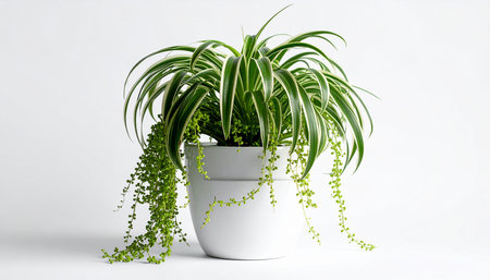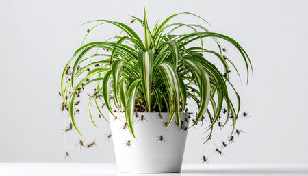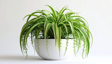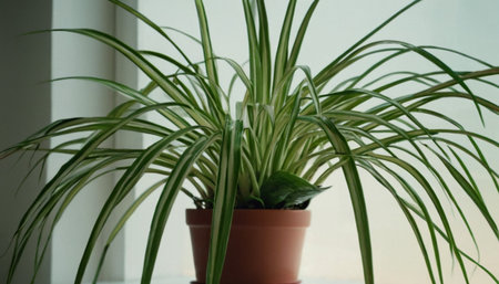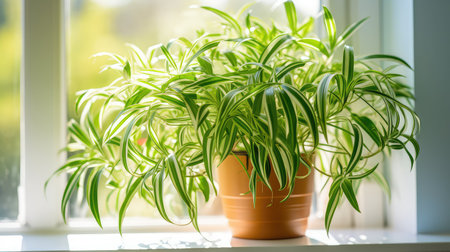 Lush Green Spider Plant Houseplant: Vibrant Foliage with White Stripes (Chlorophytum comosum), an Easy-Care Indoor Air Purifier for Natural Home Decor
