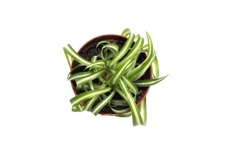 Small Chlorophytum in flowerpot view top isolated on white background