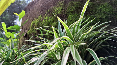 Nature background of plant, Chlorophytum comosum, spider plant, Copy space, Selective focus.
