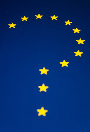 Many questions surround Brexit, here is a question mark made out of the yellow EU flag stars.