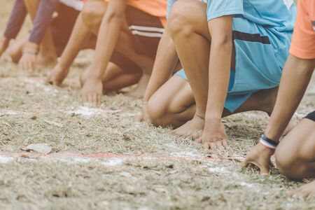 Student prepare to leaving the starting for relay race at school sports day. School sports day concept.
