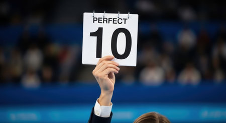 Judge showing perfect score 10 during sport competition. Sport rating. Concept of excellent performance.