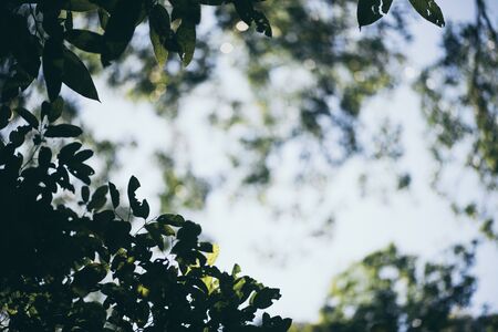 Green leaves with sunlight in the morning. Nature background. Selective focus.
