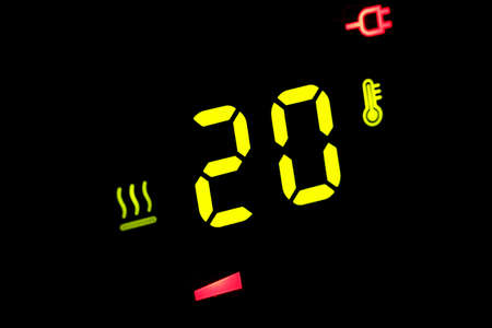 On a black electronic thermometer display -20 degrees Celsius