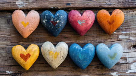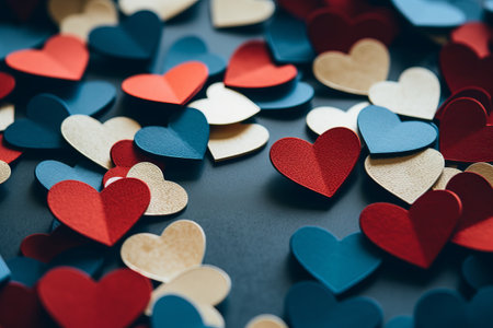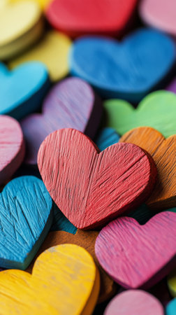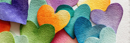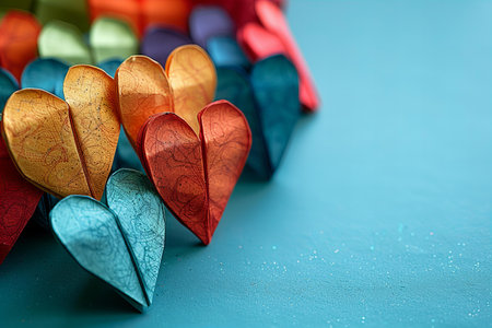 This image showcases colorful heart shapes on textured paper, perfect for romantic designs, greeting cards, or festive decorations.