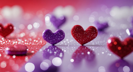 AI Generated. Red Purple White Glitter Hearts Background Texture