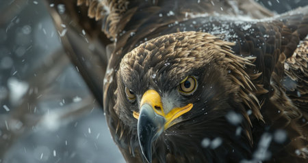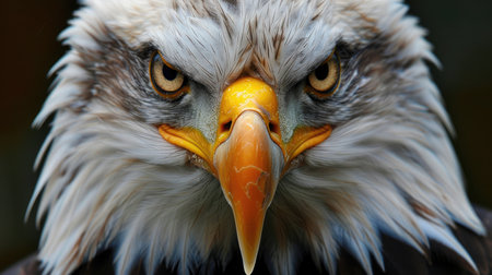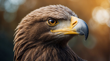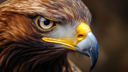 This striking close-up captures the intense gaze of a majestic eagle, showcasing its intricate feather details and powerful beak. A true symbol of wildlife.