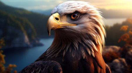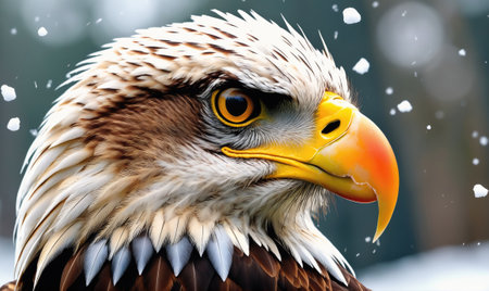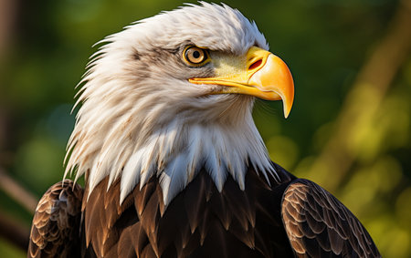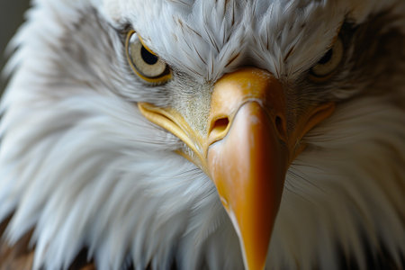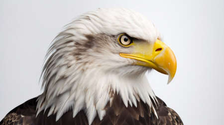 Illustration of photograph of a bald eagle with a white beak, high quality, high resolution