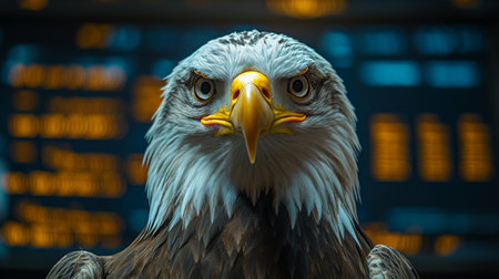 A striking close-up of a falcon's eyes, reflecting a stock market graph. the image embodies precision and strategic thinking, ideal for financial branding or investment-themed marketing, illustrating keen insight and sharp focus for business success.