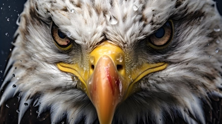close-up of a bald eagles piercing eyes and beak, created with generative ai