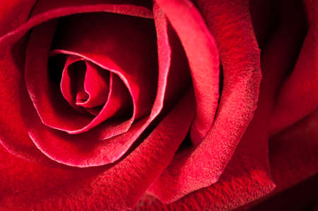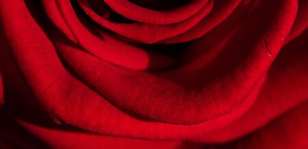 Extreme macro shot of the deep velvety texture inside a single, imperfect, curled red rose petal und