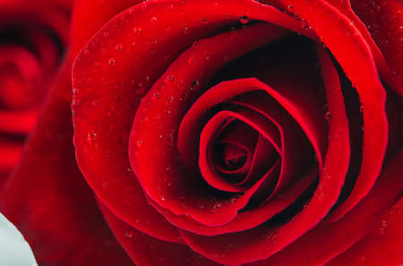 Red rose with water drops close-up macro photography. Beautiful red rose.