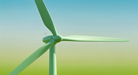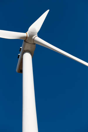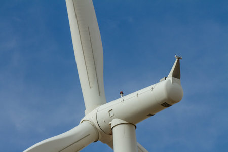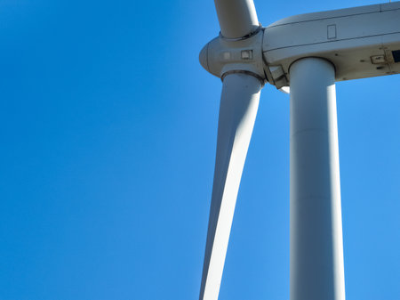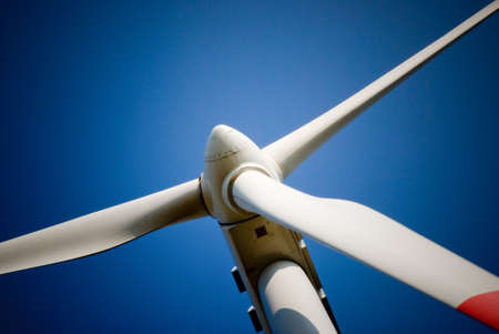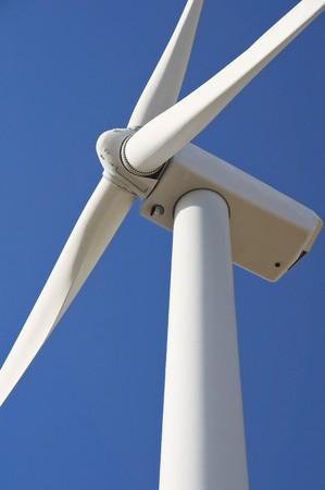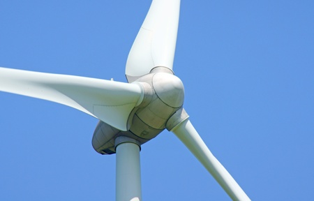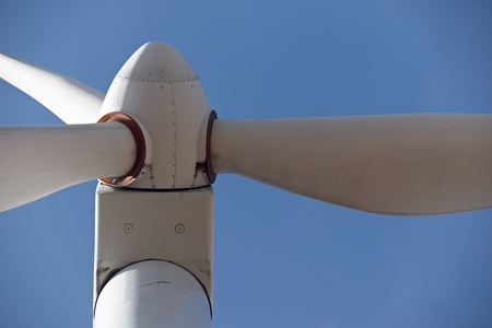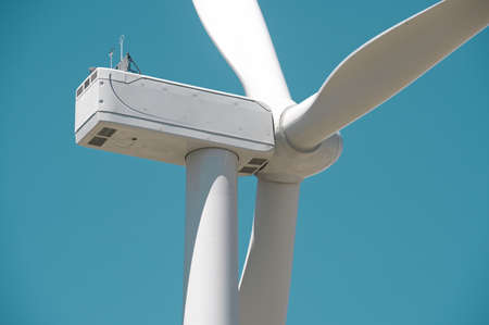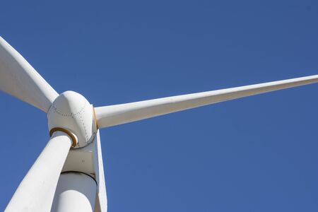 Detail of a wind turbine against blue sky