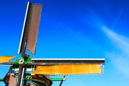 Detail of a windmill with a blue sky