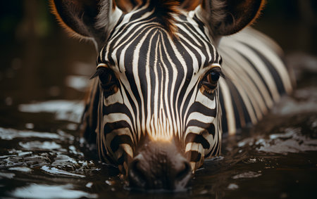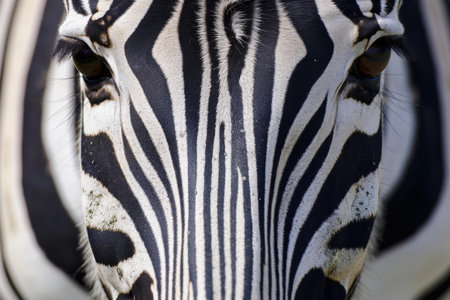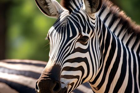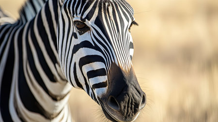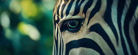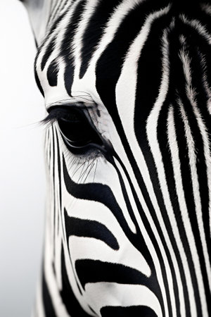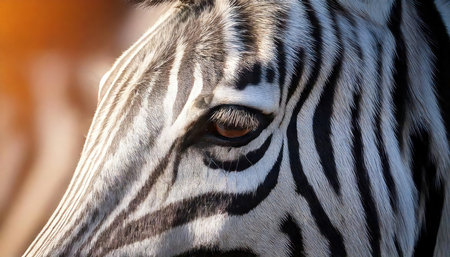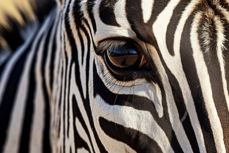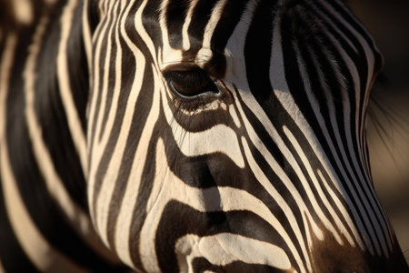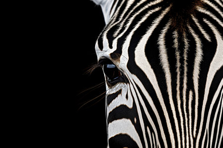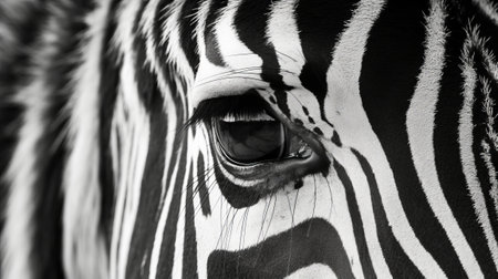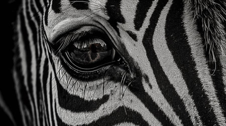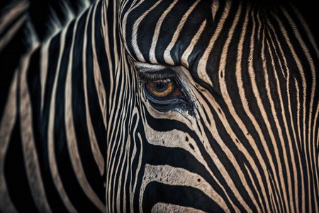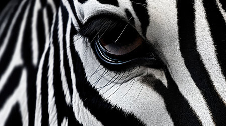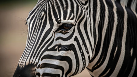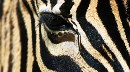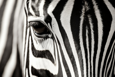 Detailed macro shot of a zebras unique striped pattern and expressive eyes