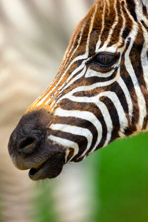 Close-up Portrait of a Burchell's Zebra, Wild Equus Burchellii, Candid Wildlife Photography