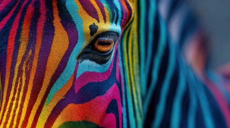 Colorful Zebra With Vibrant Stripes close up