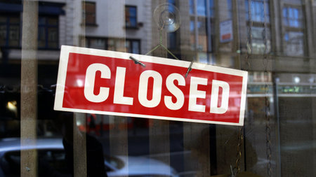 sorry we are closed sign hanging outside business office store shop or restaurant